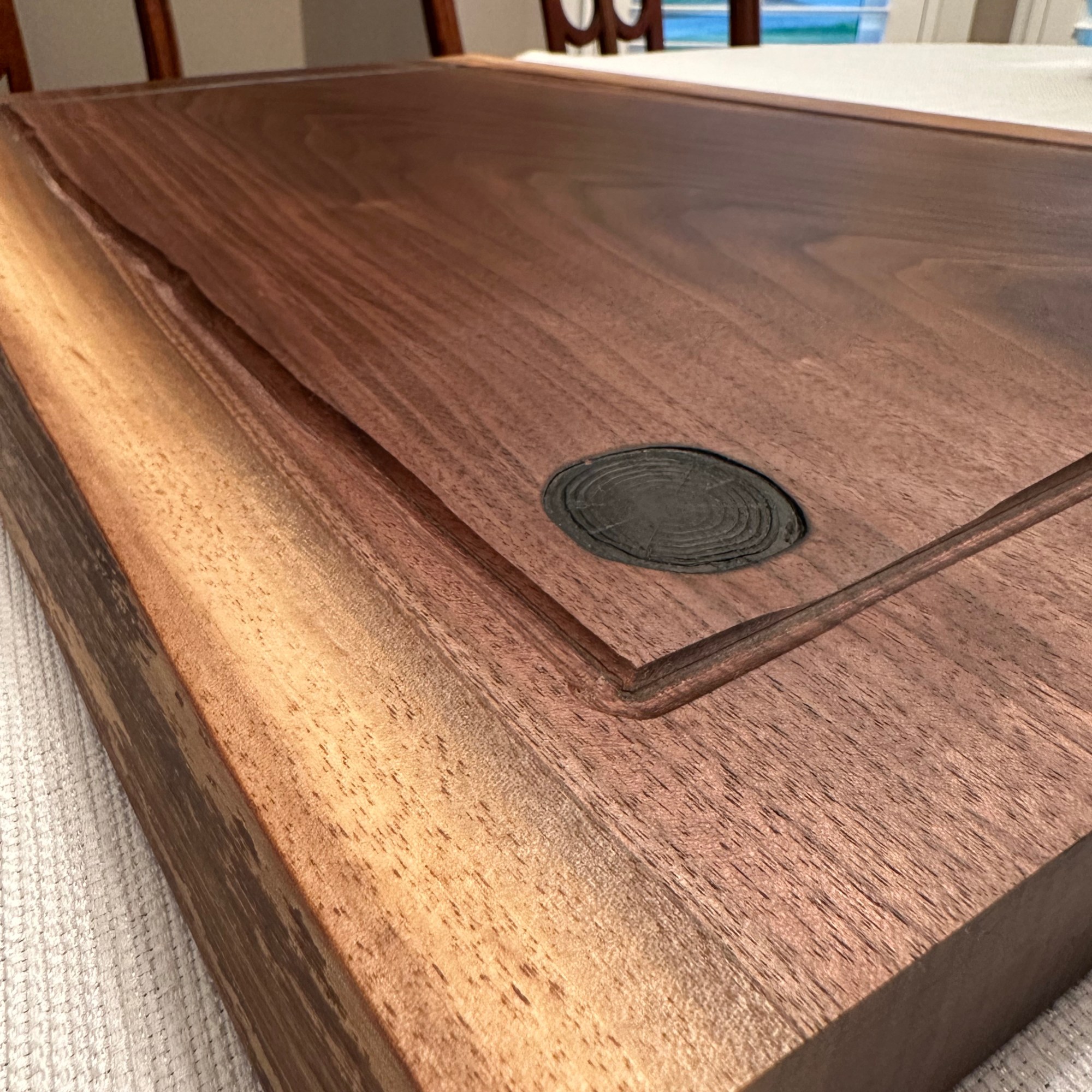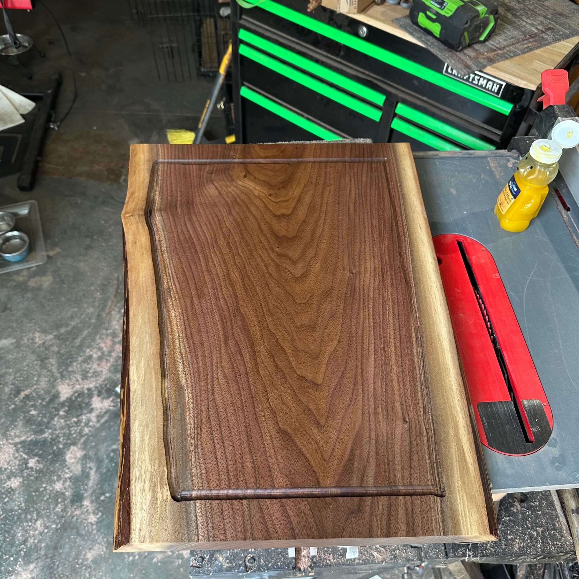 This is a live edge walnut slab I made into a cutting board. While the shape didn’t change much, this one was fun to try to hand plane and sand to get level on both sides, hopefully it’ll last a good while!