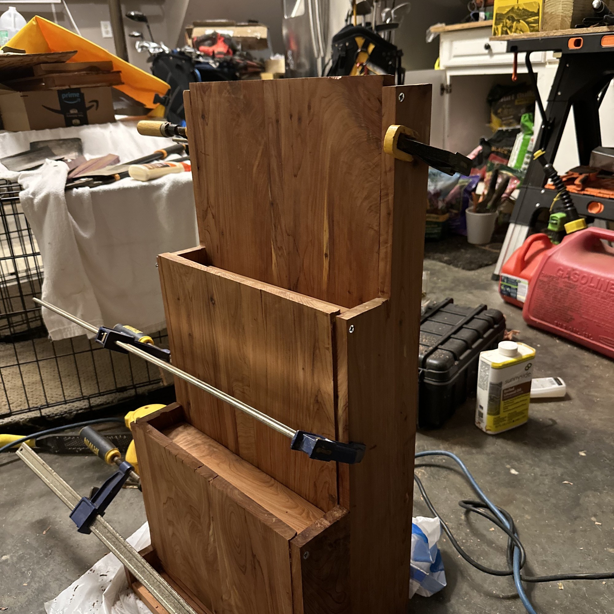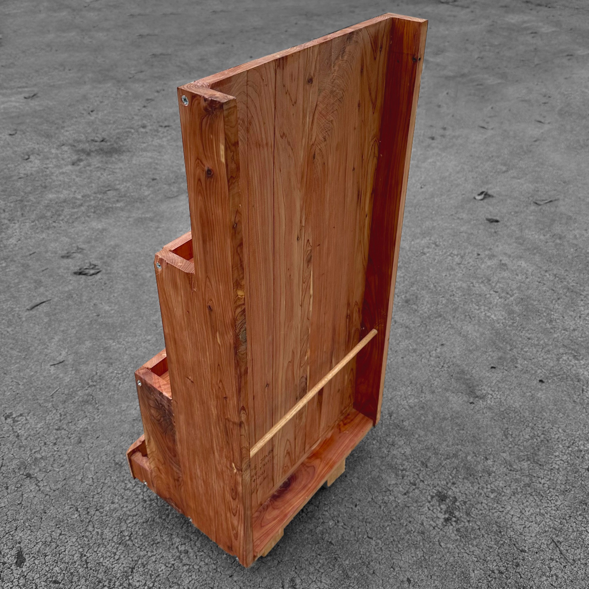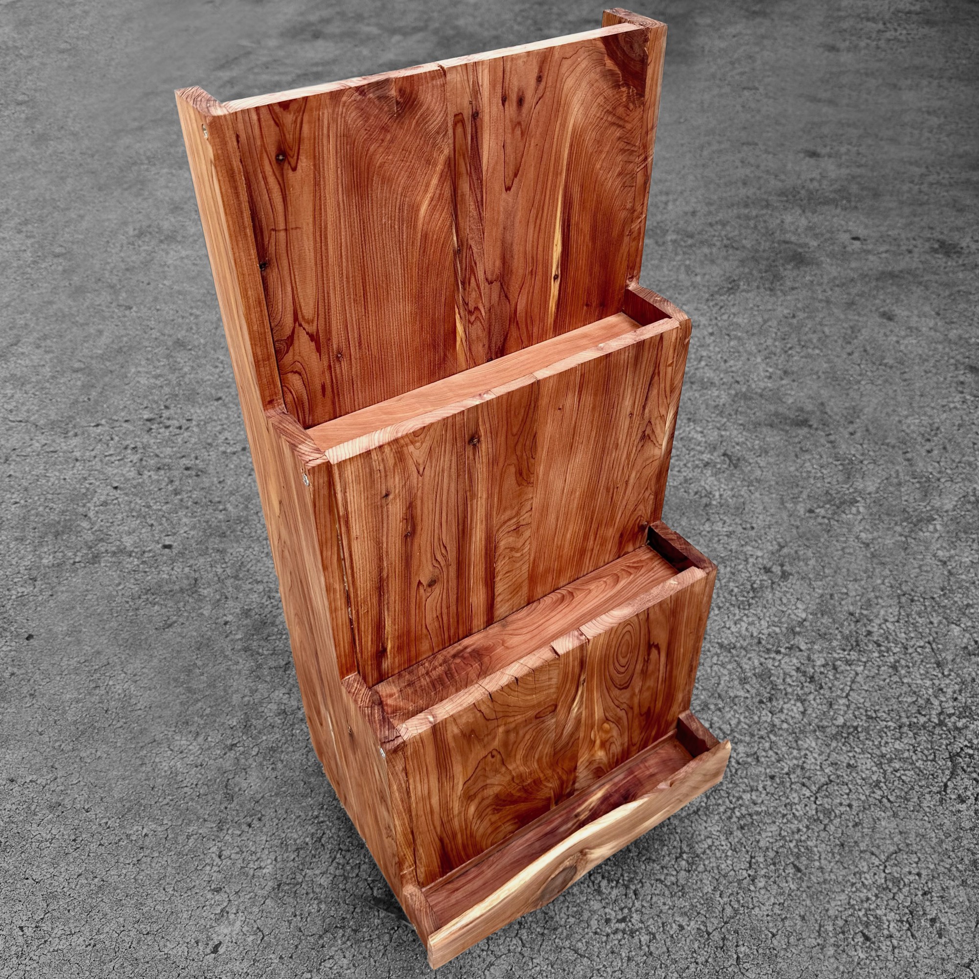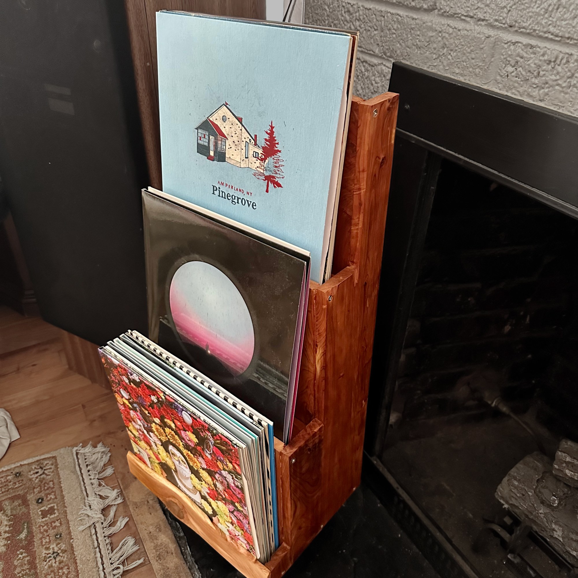 I made this record stand for some friends, this was made from a single 2X10 ish cedarwood beam. The natural color of the cedar was the highlight of the project, and I found little caves dug all in the wood from carpenter bees, so that was fun to use as well!